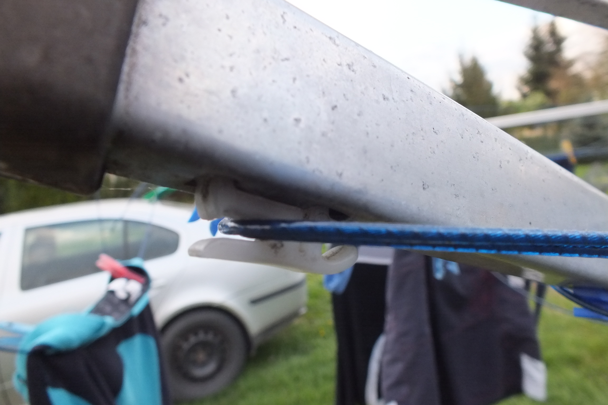 Po wielu latach stare spinki w suszarce ogrodowej przestały działać(a nawet istnieć), pod wpływem promieni UV pokruszyły się. Proces demontażu praktycznie był niemożliwy! Spinki kruszyły się w rękach, wiele ich już brakowało.