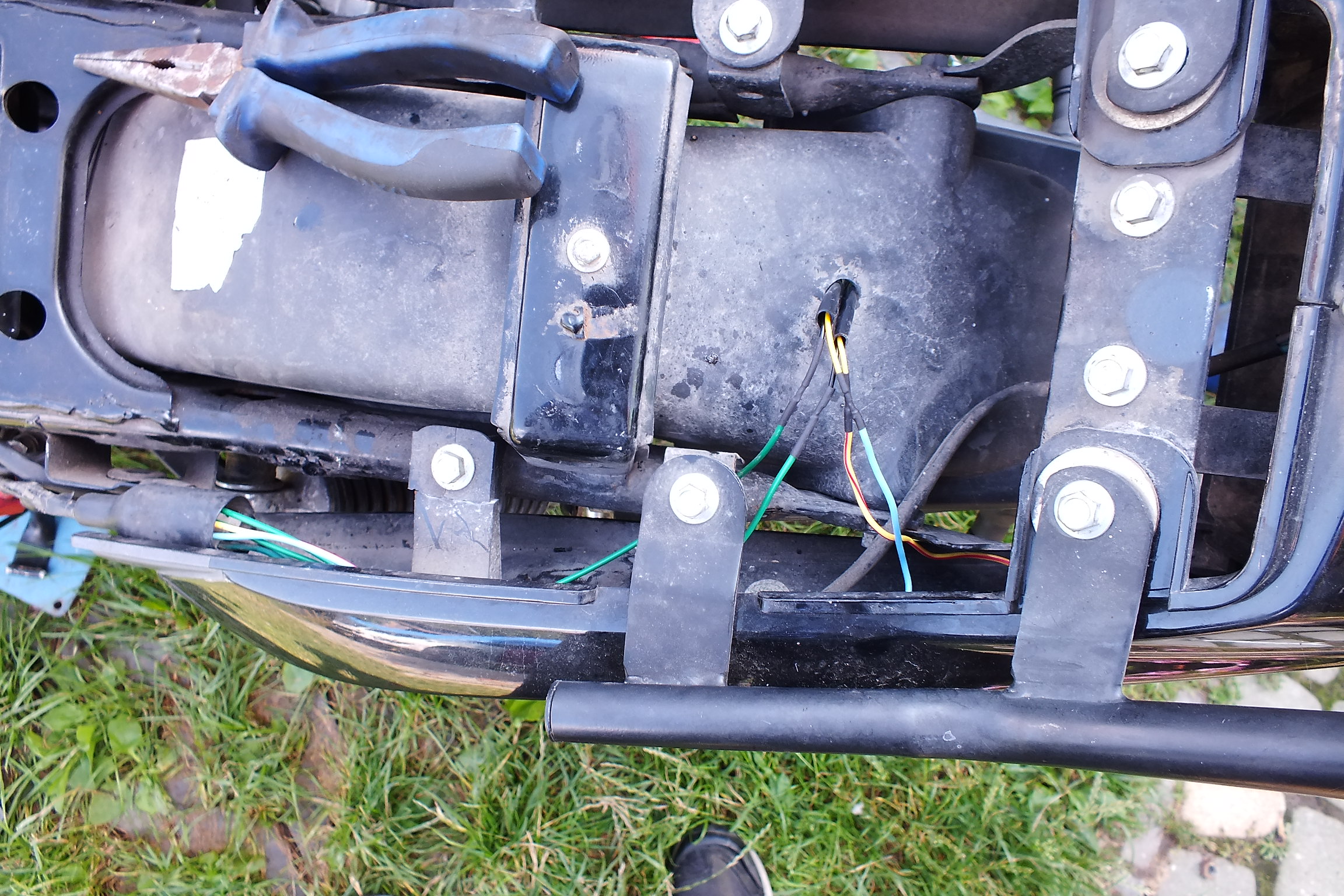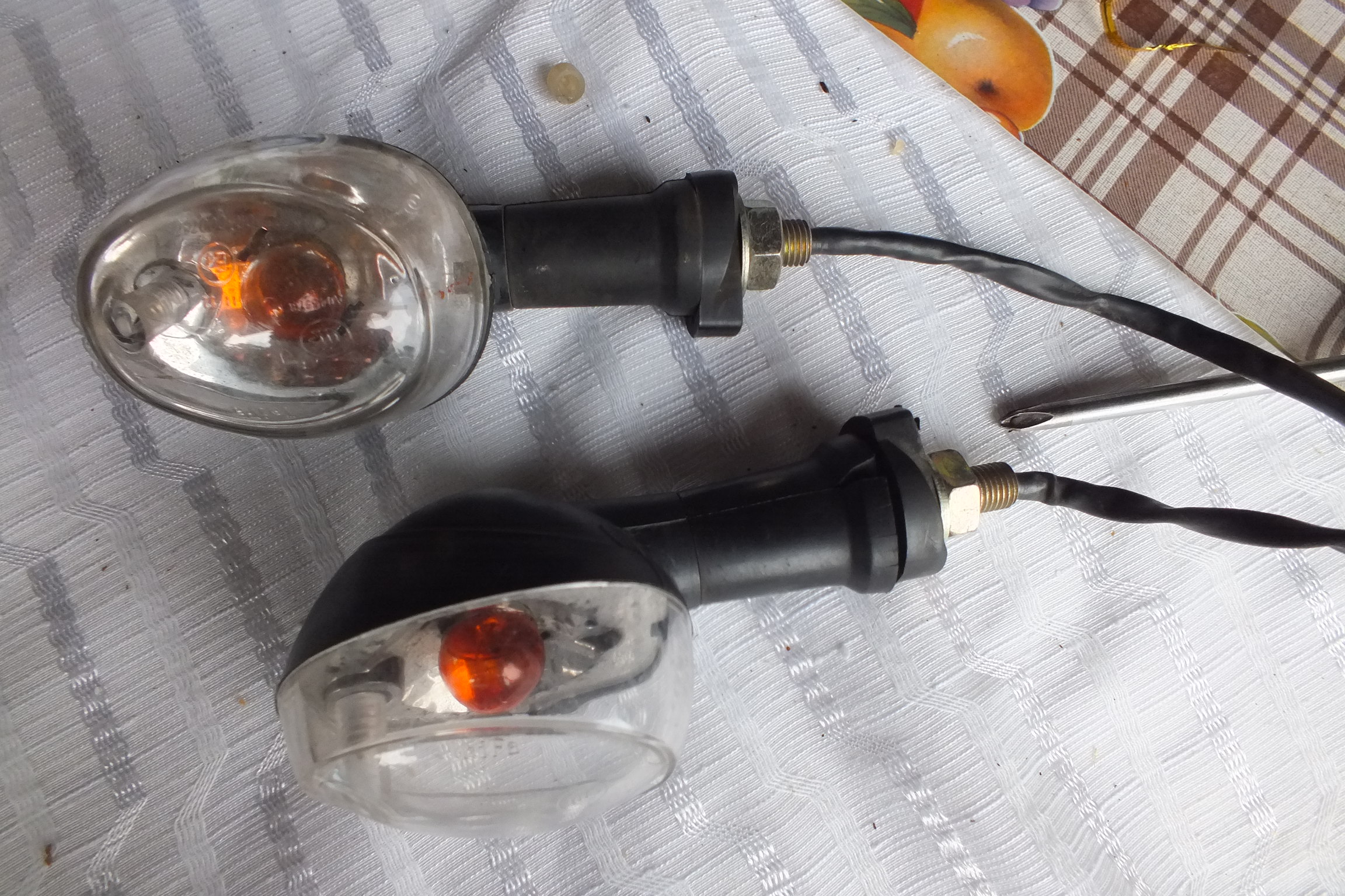 Oryginalne kierunkowskazy sprawiały problemy. Najgorzej zachowywał się tylny lewy kierunkowskaz. Praktycznie po każdej przejażdzce wisiał na kablu, klejenie go nie przynosiło żadnych rezultatów. On po prostu chciał wisieć i tyle.