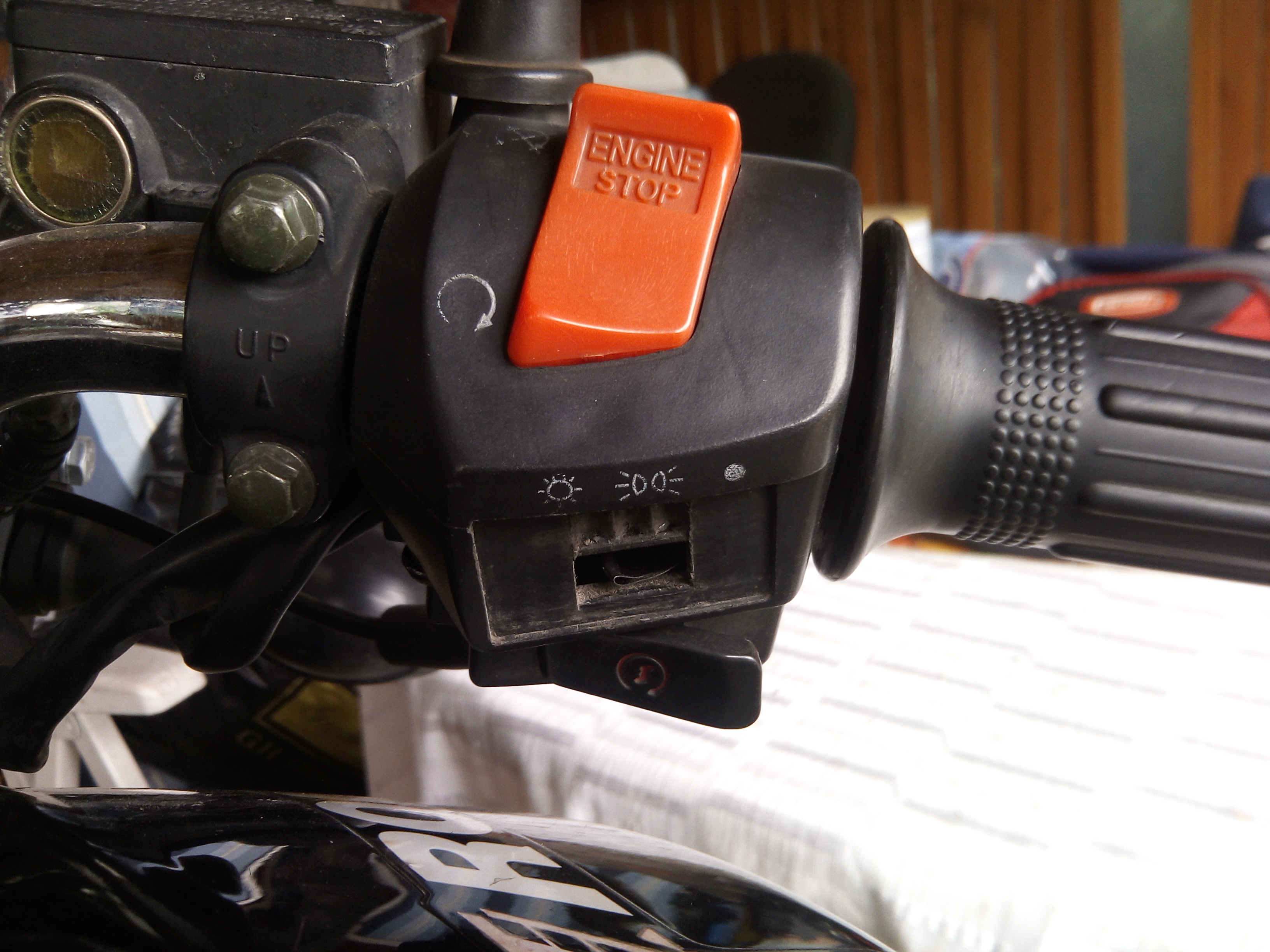 Nowe przełączniki nie do końca są takie same, wizualnie prawy przełącznik (engine start, światła, włącznik rozrusznika) wygląda identycznie. Niestety tylko wygląda. Głównym problemem jest duży czerwony przycisk "Engine start" działa on odwrotnie niż jak byśmy tego oczekiwali. Mianowicie zetka odpala gdy przewody do niego poprowadzone są w pozycji rozłączonej! Nowy przełącznik po włączeniu mostkuje te przewody i zetka nie odpali, chyba że przeciągniemy przycisk do góry. Jest to tak dziwne uczucie, że nawet nie wiem do czego to porównać. Jednak spróbuję, to tak jakbyście chodzili spać z otwartymi oczami, a normalnie mieli je zamknięte. Mruganie też byłoby odwrotne. Ten włącznik po prostu działa tak, jak byłby wzięty z równoległej rzeczywistości. Jest to tak silne przyzwyczajenie, że wolę, aby ono tam zostało i postanowiłem nie mieszać tych dwóch światów. Starego czerwonego przycisku nie da się przełożyć do nowej obudowy, więc przeniosłem go razem z górną częścią obudowy.